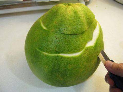- Bưởi bạn rửa sạch rồi ngâm trong chậu nước muối pha loãng trong vòng 5 phút. Chú ý, chọn bưởi quả căng bóng, không bị dập nát, thâm đen.