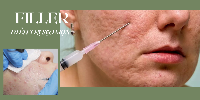 Filler được sử dụng để điều trị sẹo mụn - sẹo lõm hoặc sẹo rolling. Đây là loại sẹo xuất hiện khi da bị mất điểm độ đàn hồi và trở nên lõm xuống, tạo ra những vùng lõm trên da. Fillers giúp điều chỉnh sự không đều đặn của da bằng cách tạo thể tích dưới da và làm phẳng sẹo, làm cho da trở nên mịn màng hơn, kích thích sản xuất collagen tự nhiên của da. Quá trình này thường diễn ra nhanh chóng và không đòi hỏi thời gian nghỉ dưỡng dài hạn.