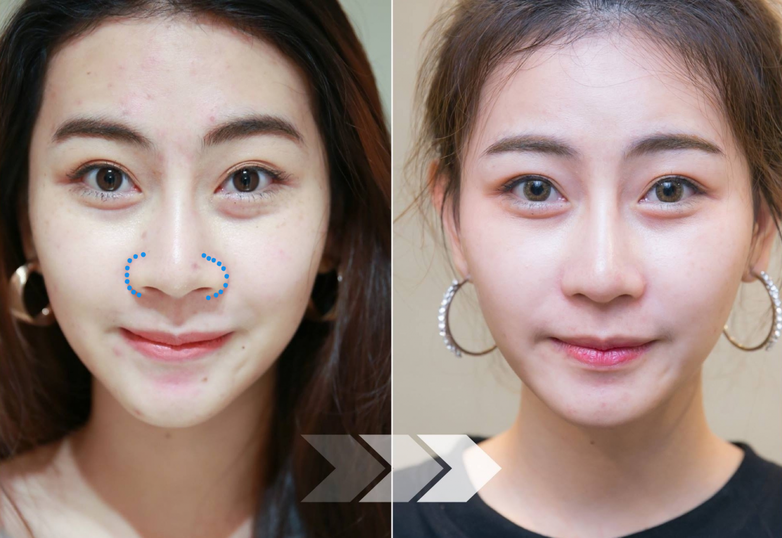 Bệnh nhân trước và sau thu hẹp cánh mũi