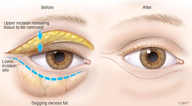 Khi có tuổi, mí mắt có thể bắt đầu sụp xuống và tích đầy mỡ, khiến bạn trông già đi và mệt mỏi. Mí mắt sụp cũng có thể làm giảm tầm nhìn ngoại vi của bạn, đặc biệt là ở các rìa xa và đỉnh của phạm vi thị giác của bạn. Phẫu thuật cắt mí mắt có thể giúp giảm sự xuất hiện của túi dưới mắt, loại bỏ mí mắt bị sụp và mệt mỏi, đồng thời phục hồi thị lực ngoại vi đã bị suy giảm do da mí mắt chảy xệ nghiêm trọng.