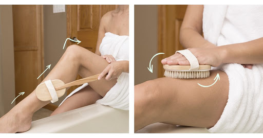 Bằng cách dùng bàn chải lông, vuốt da bắt đầu từ bàn chân và bàn tay về phía tim; bạn thực hiện điều này trong khi da bạn vẫn khô vài buổi sáng một tuần trước khi bạn tắm. Thói quen đơn giản vào buổi sáng này có thể giúp thoát dịch bạch huyết và loại bỏ tế bào da chết, giúp bạn tẩy da chết đúng cách.