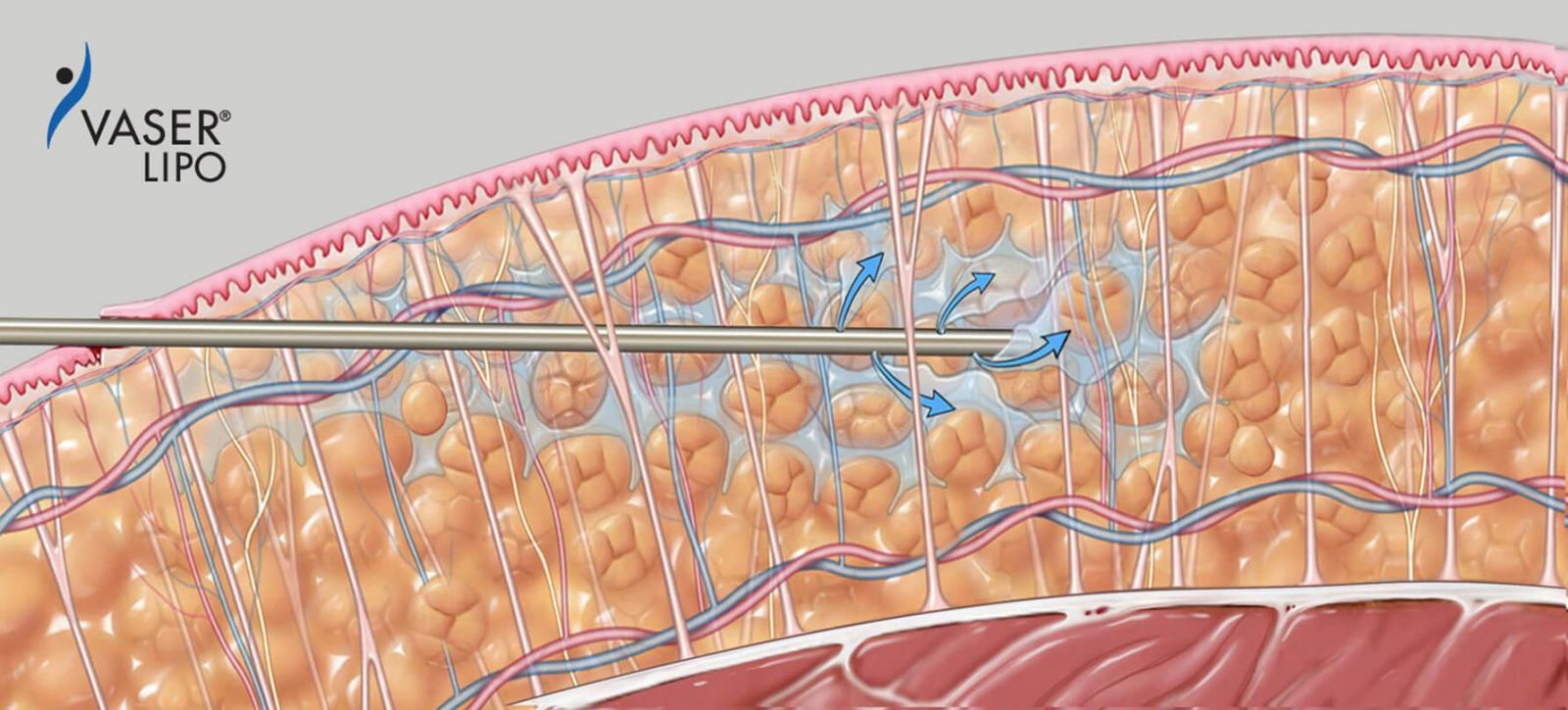 • Sau đó, các đầu dò siêu âm sẽ được đưa vào da thông qua một vết rạch nhỏ để phá vỡ các mô mỡ.