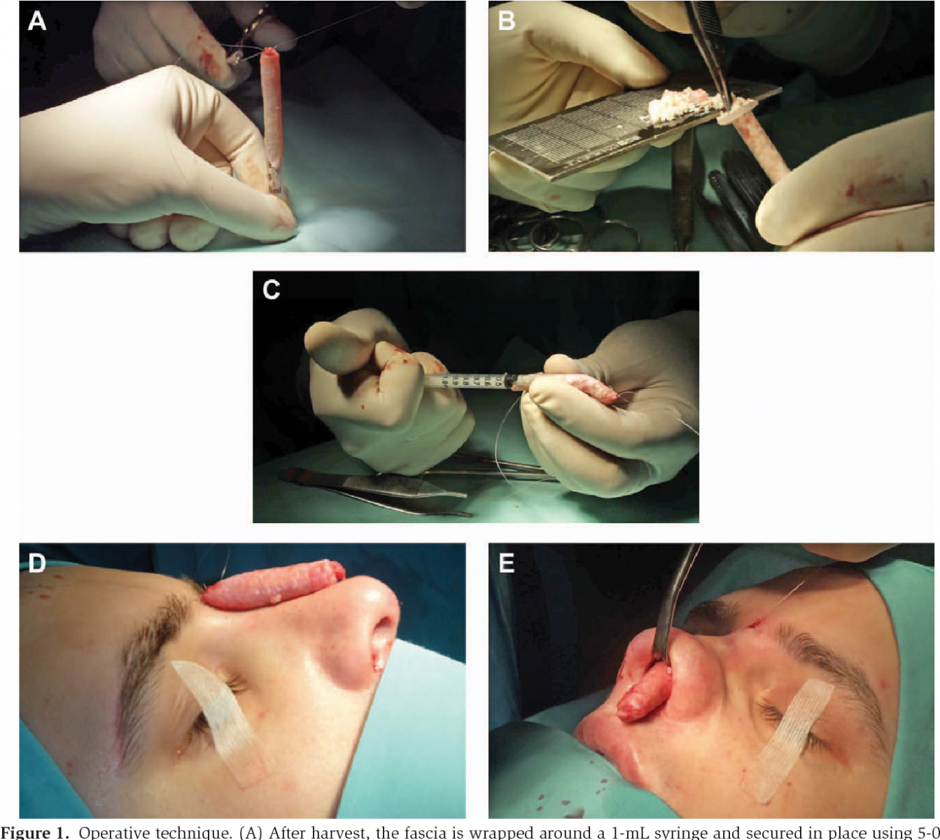 Nâng mũi bằng sụn sườn thái hạt lựu kèm theo cân thái dương trong phẫu thuật nâng mũi nội soi thứ phát