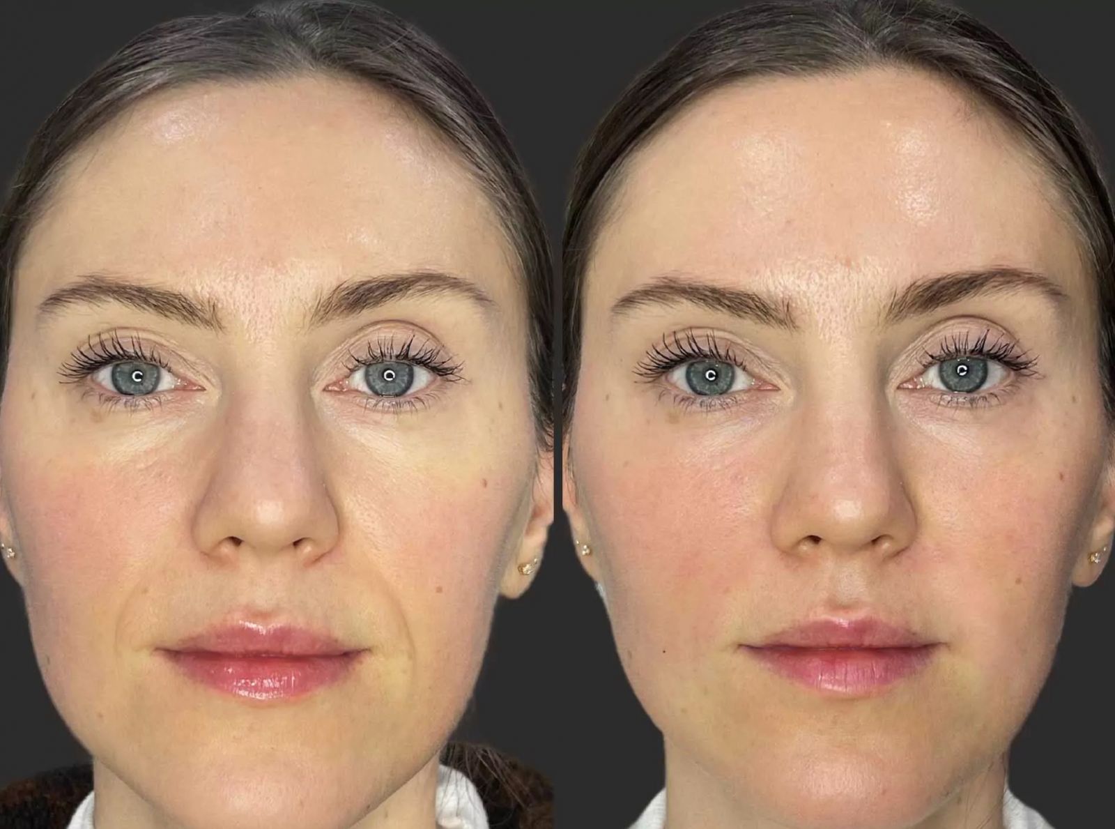 Bệnh nhân trước và sau tiêm filler độn rãnh cười