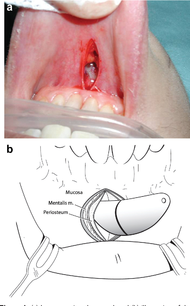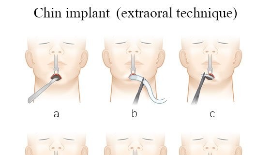 Hình minh hoạ phẫu thuật độn cằm vết mổ kín nằm bên trong cằm, bên trong môi dưới