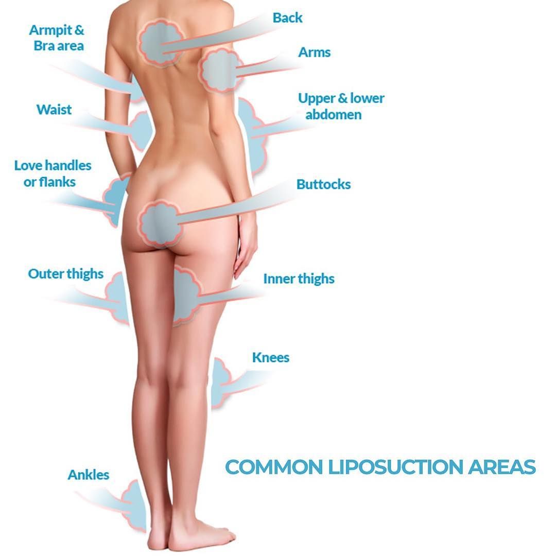 Các khu vực cơ thể sau đây thường được nhắm mục tiêu để điều trị hút mỡ: