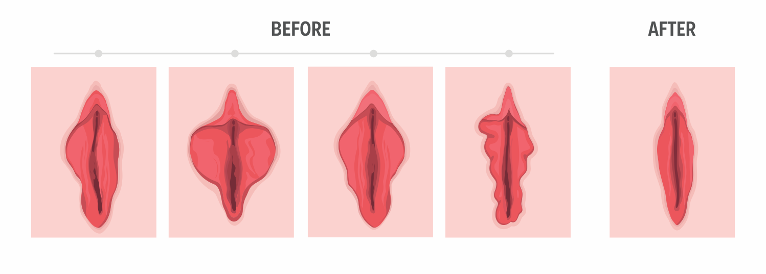 Labiaplasty có lẽ là can thiệp thẩm mỹ bộ phận sinh dục phổ biến nhất dành cho phụ nữ. Trong đó, kích thước của một hoặc cả hai môi âm hộ (môi lớn hoặc môi bé) sẽ được cắt giảm, loại bỏ, tạo hình dáng môi âm đạo hài hòa hơn.