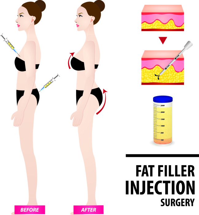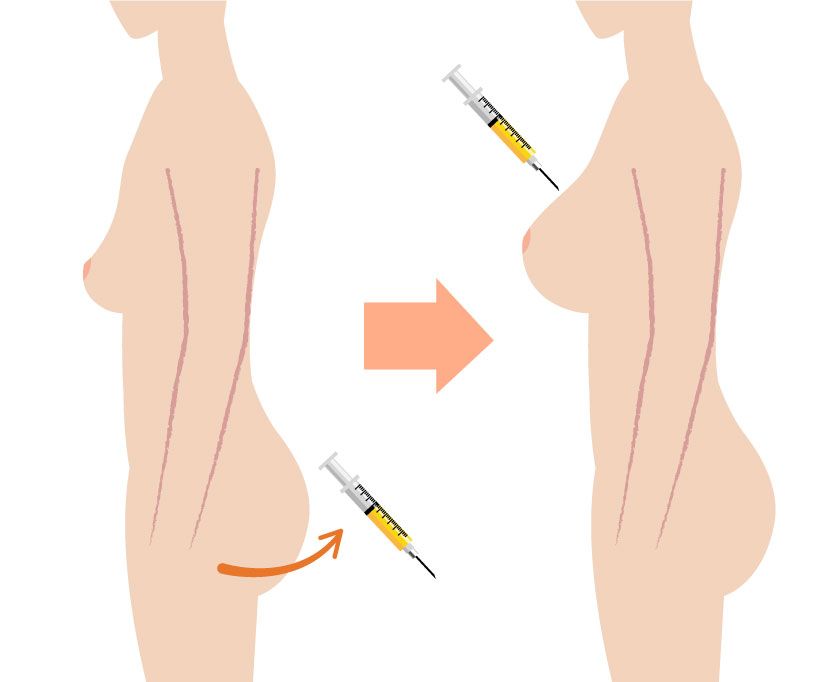 Mô mỡ từ các vị trí dư thừa sẽ được tiêm để tăng khối lượng cho vùng ngực, mông...