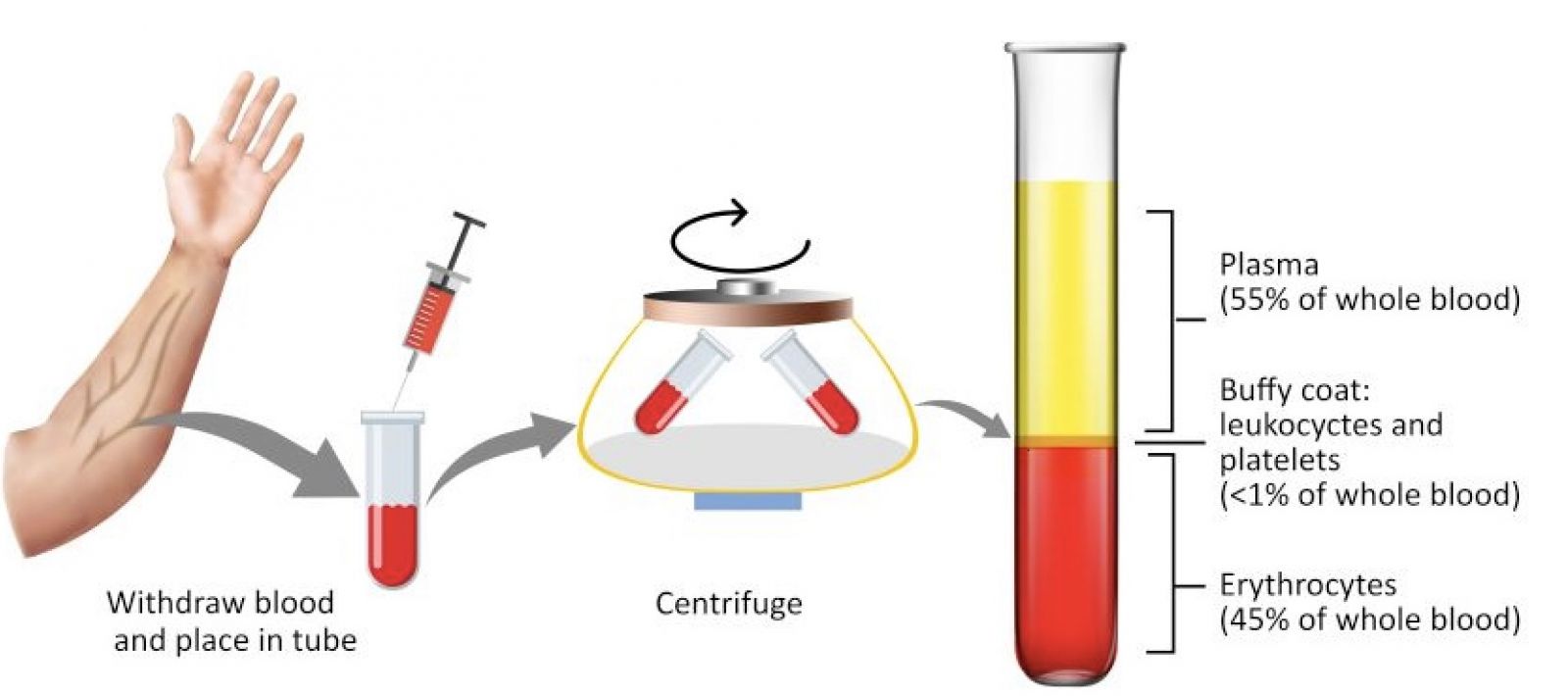 Bước 2: Lấy máu đến phòng thí nghiệm: Ống nghiệm chứa máu của bạn sẽ được đặt trong một thiết bị y tế gọi là máy ly tâm, máy sẽ tách máu của bạn thành nhiều lớp. Một trong những lớp này chứa một lượng tiểu cầu tập trung cao.