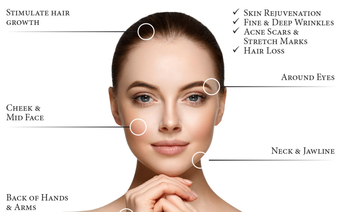 Các khu vực có thể được điều trị thẩm mỹ với huyết tương PRP: