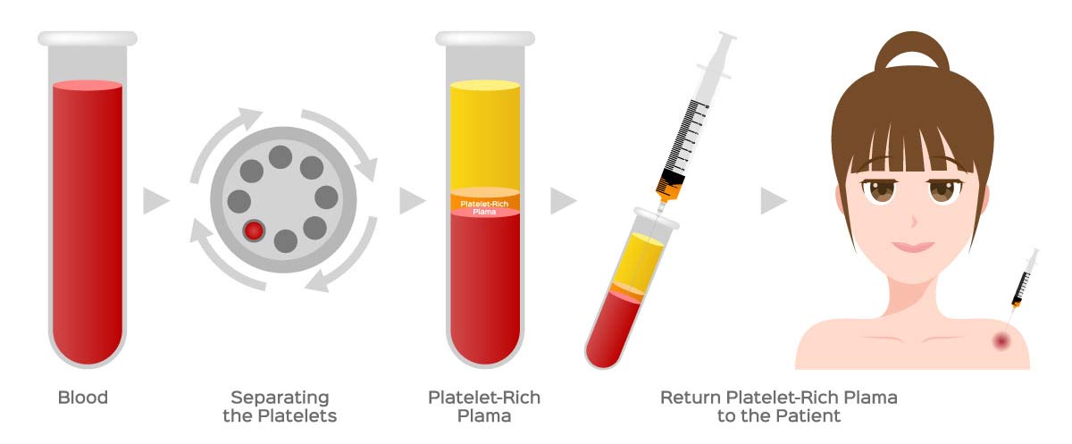 Đây là quy trình khá đơn giản bao gồm rút máu từ chính cơ thể của bệnh nhân (thường là cánh tay trên hoặc đùi trong), sau đó đặt nó vào máy ly tâm. Mục đích là để tách huyết tương giàu tiểu cầu khỏi các thành phần khác của máu. PRP thu được sẽ đưa lại vào các vùng bị ảnh hưởng cần điều trị trên khuôn mặt.