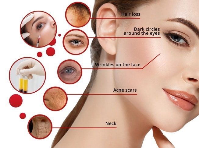 PRP điều trị các tình trạng da được biết là kích thích các cơ trên khuôn mặt và thúc đẩy tái tạo tế bào tự nhiên và khỏe mạnh, mang lại vẻ ngoài tổng thể mịn màng và rạng rỡ hơn. PRP là một thủ thuật tự thân, có nghĩa là nó chỉ sử dụng các vật liệu có nguồn gốc trực tiếp từ cơ thể của bạn và điều này làm giảm nguy cơ nhiễm trùng, đào thải hoặc bị phản ứng dị ứng.