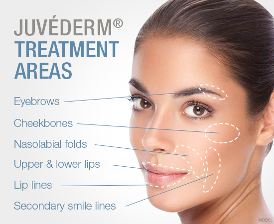 Các vùng trên mặt được điều trị an toàn với filler Juvéderm