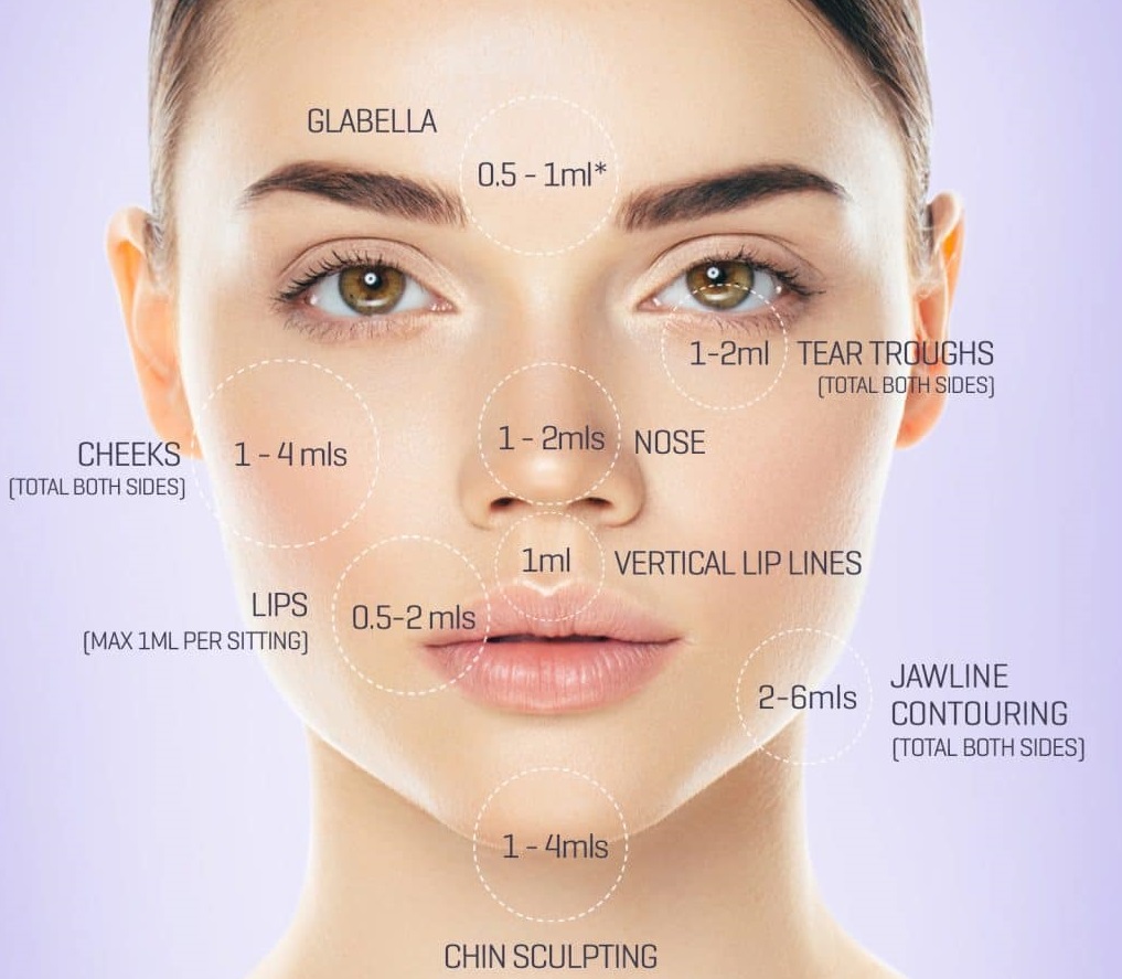 Lượng filler cần tiêm cho từng vị trí cần khôi phục khối lượng trên mặt