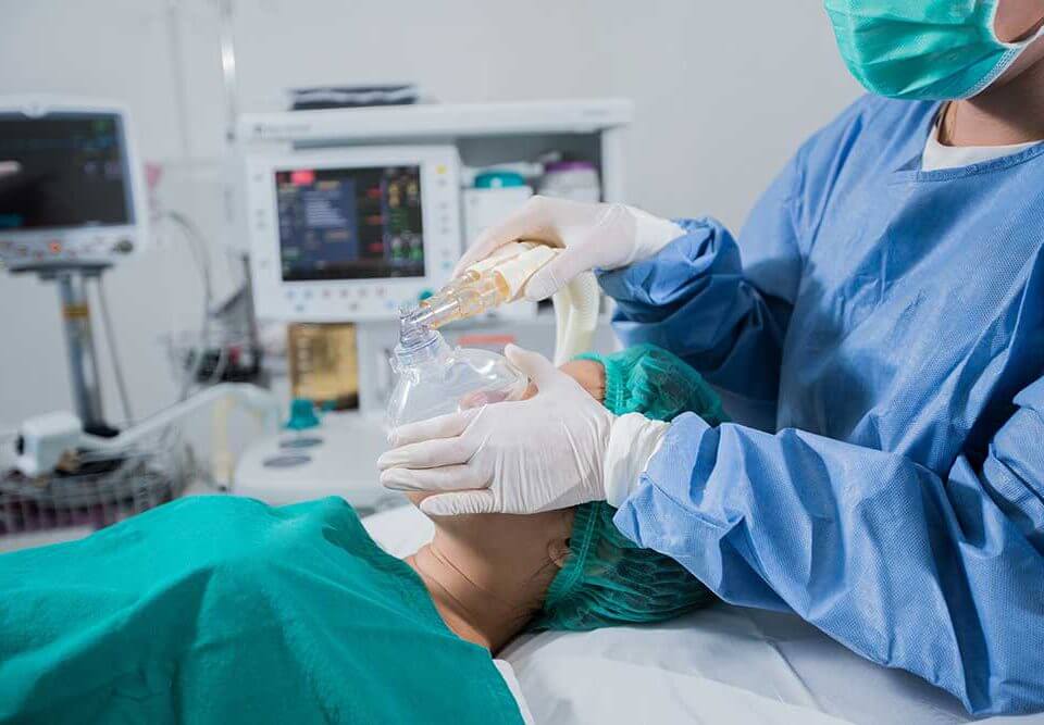 Khi gây mê toàn thân, nên sử dụng hệ thống thông khí bảo vệ (thể tích thủy triều 6–8 mL / kg trọng lượng cơ thể lý tưởng, áp suất đỉnh dưới 30 cm H2O và PEEP 6–8 cm H2O), đặc biệt là ngăn ngừa tổn thương phổi trong phẫu thuật kéo dài.